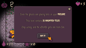 You can step on the tiles to reveal them but be aware: Step on a haunted tile, and congrats: You’ve just made a new friend! It’ll start following you around and can hurt you!